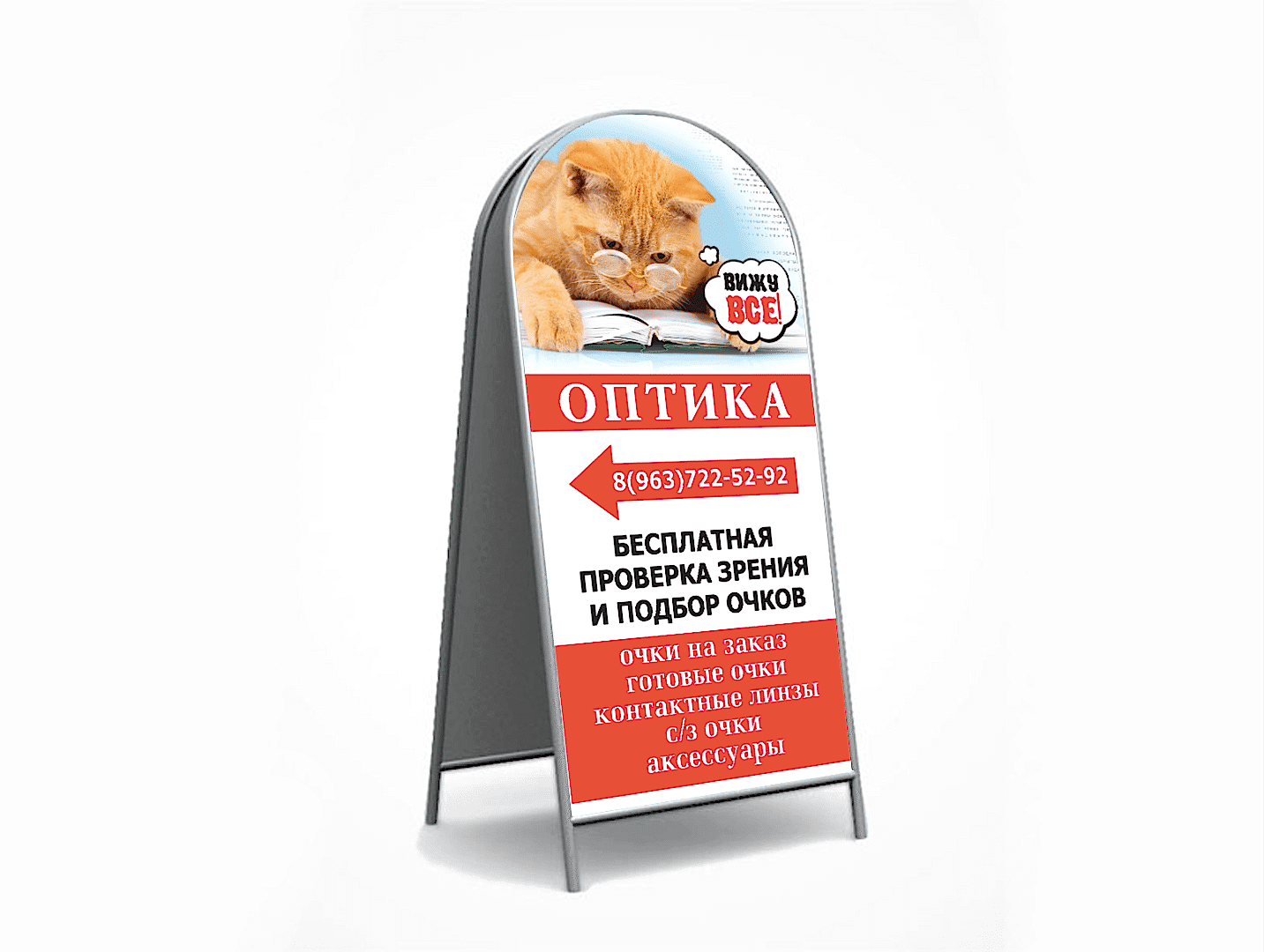 Также на штендере указывают информацию о компании (логотип, название, контактные данные и т.д.). Помимо этого желательно указывать направление движения (стрелочкой), схему проезда и приблизительное расстояние, чтобы заинтересованному клиенту было проще найти вашу компанию.