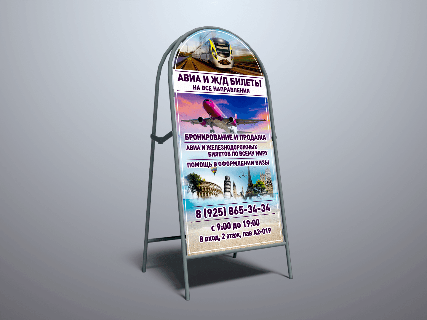Двусторонний штендер (стойку) устанавливают в многолюдных местах с большим Pin Up движения: недалеко от проезжей части или тротуара.
