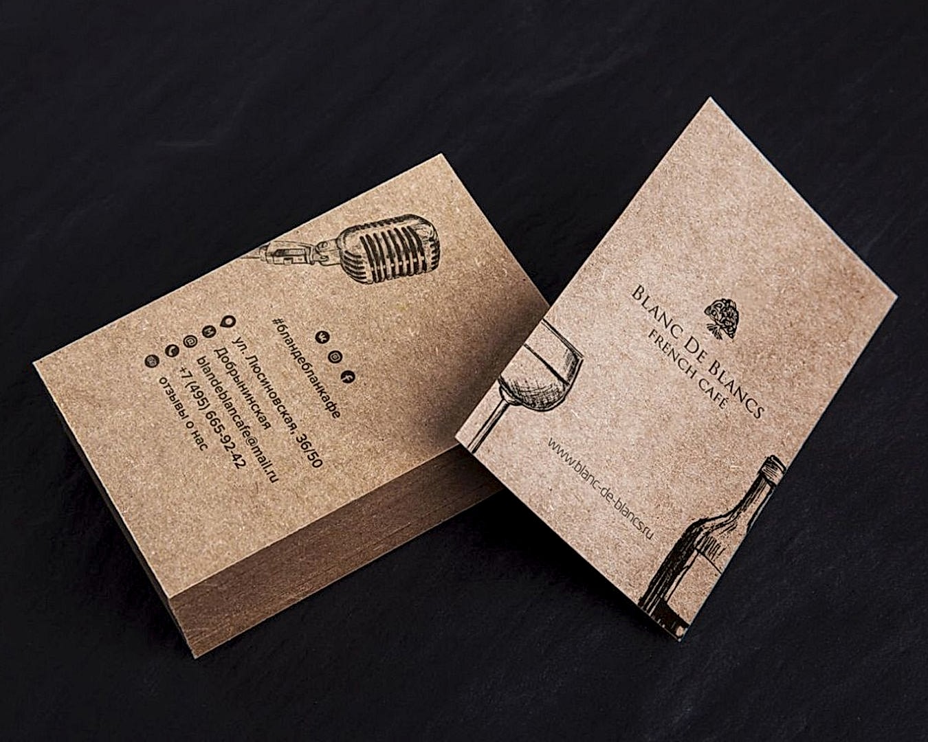 Крафтовый материал позволяет изготавливать оригинальные дизайнерские решения. Для этого используют бумагу или картон различной толщины и текстуры. Это дополняет цветовую составляющую при разработке концепции визитки из крафтовой бумаги в полиграфии.